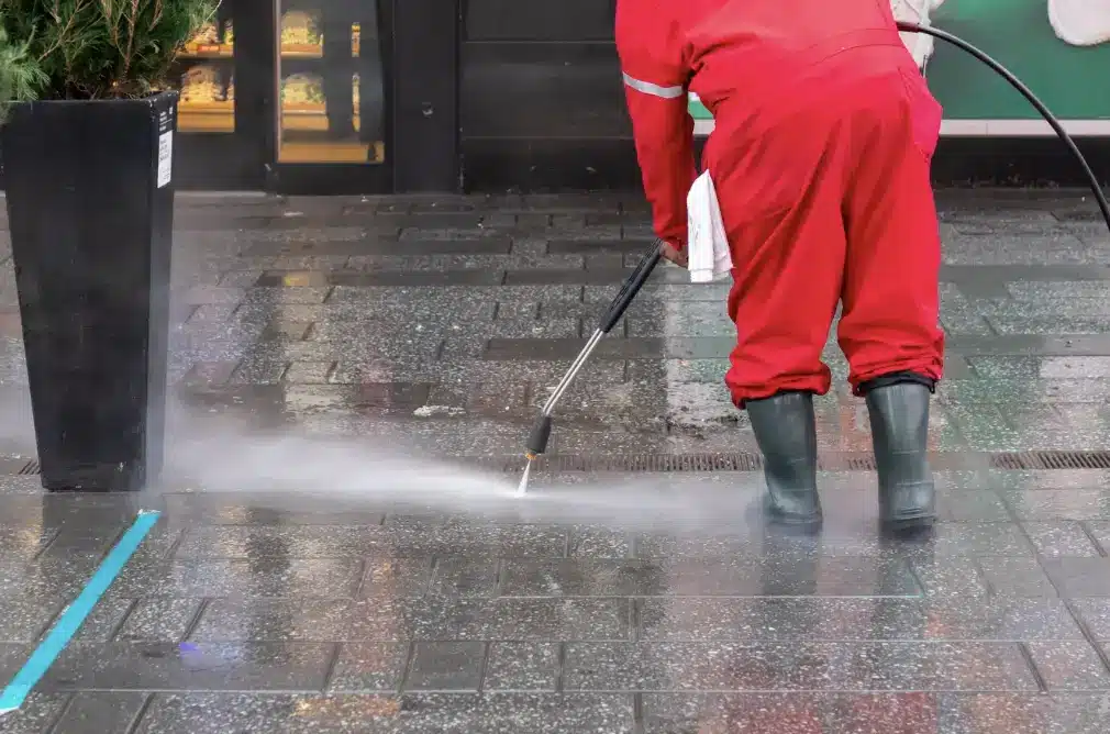 Pressure washing uses high-pressure cold water, making it ideal for delicate surfaces like wood decks or vinyl siding. Power washing uses heated water, which is more effective for removing tough stains like grease, mold, and deep grime from hard surfaces like concrete or stone.